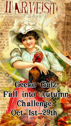I chose the digi paper and colors from the Inspiration photo at Simon Says Wednesday, the Outlawz Tuesday Color Challenge and Dragonfly Journeys Fall Festival of Colors. No kitty yet, but hopefully another, before the challenges end. I'm adding this to the Gecko Galz Fall into Autumn October Customer Challenge.